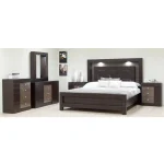 Cabecera de MDF con tablero de tela, 2 mesas de noche con 3 gavetas, 1 gavetero de 9 gavetas mas un espejo en MDF, un Tv chess de 5 gavetas.