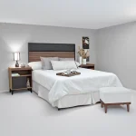 Cabecera tapizada, mesas de 3 gavetas